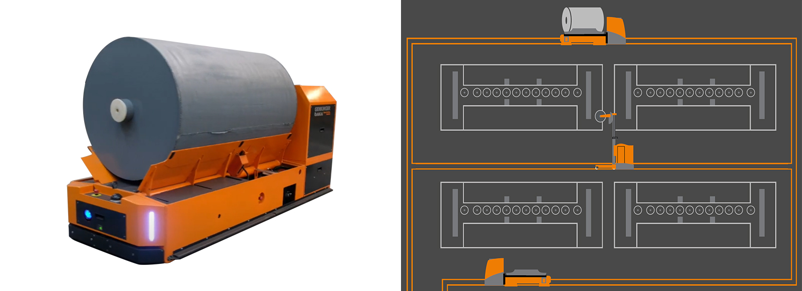 | ● | 為大布卷自動搬運(yùn),提供AGV方案。 | |